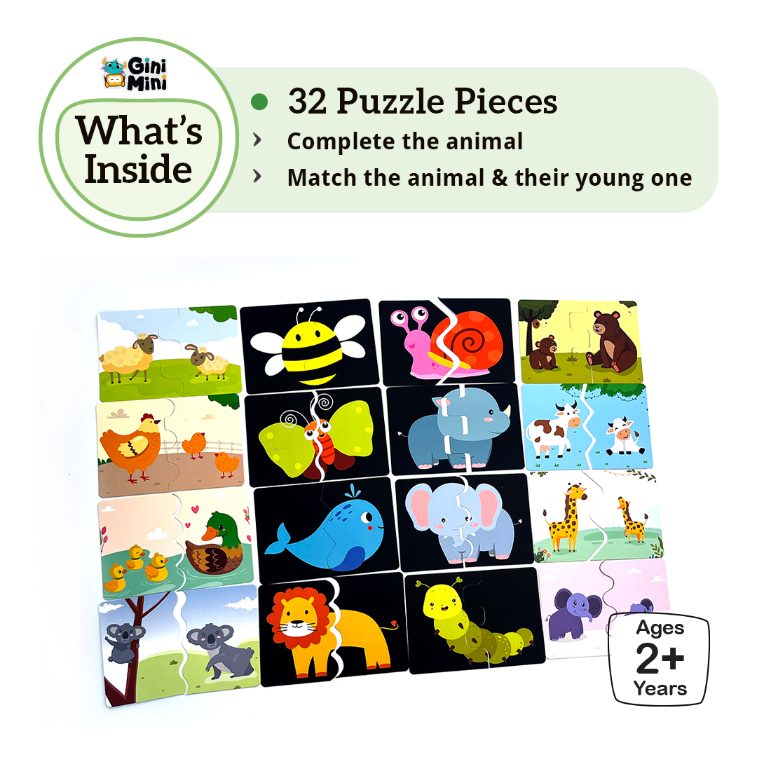 This set of 16 colorful two-piece puzzles are designed for optimal skill development and hours of exciting learning for young children. Gift your child this excellent resource for hands-on, screen-free learning.
