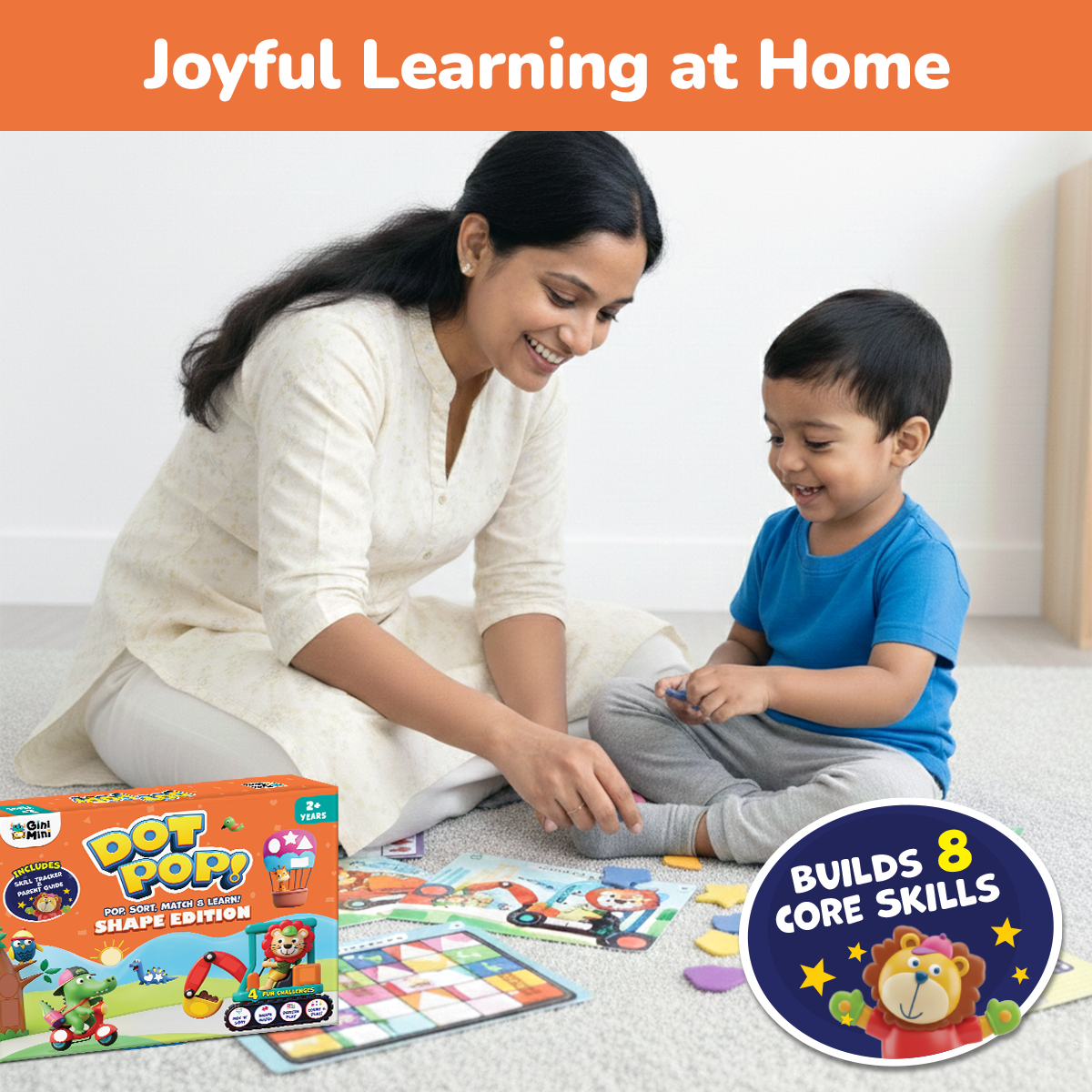GiniMini – DOT POP! Shapes Activity Kit for Kids Aged 2 to 5 Years | Fun Shape Sorting, Matching & Pattern Games | Mess-Free, Reusable, Screen-Free Play | Early Learning & Motor Skills Development