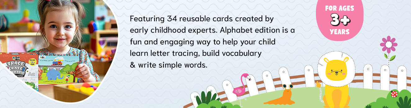 Embark on a fun-filled learning adventure with Gini Mini's Trace, Erase & Learn - Alphabet Edition, a captivating and engaging tool designed to help your child master letter tracing, expand their vocabulary, and write simple words with confidence. Expertly crafted by early childhood specialists, this set features beautifully designed, reusable cards that promise hours of educational fun and practice. It's the perfect kit for nurturing fine motor skills and fostering early literacy in a playful and interactive manner!